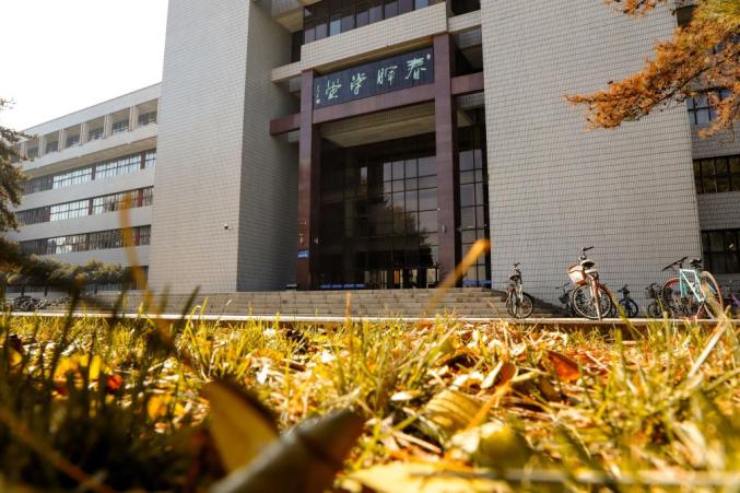 秋有教学楼门前的金叶