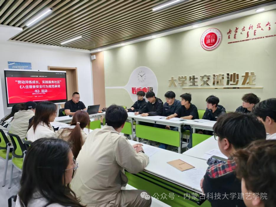 于一站式学生社区服务大厅开展“劳动淬炼成长,实践服务社区”暨《入住宿舍安全行为规范承诺书》签订活动。